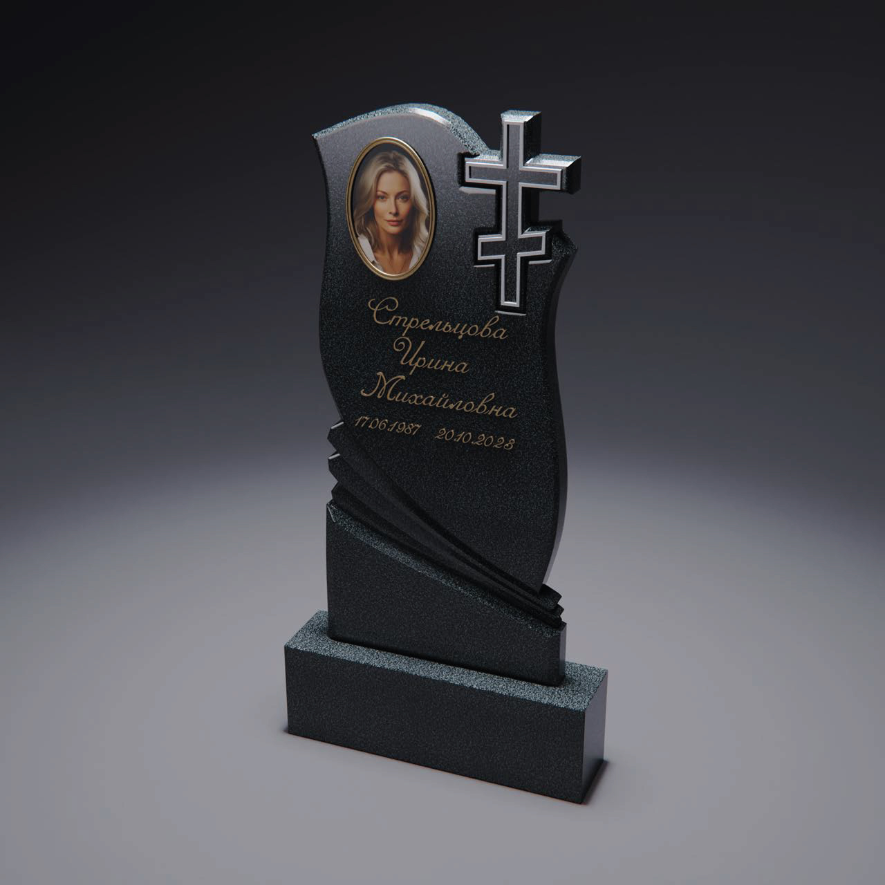 Памятник с элегантными формами, плавным изгибом и аккуратным крестом