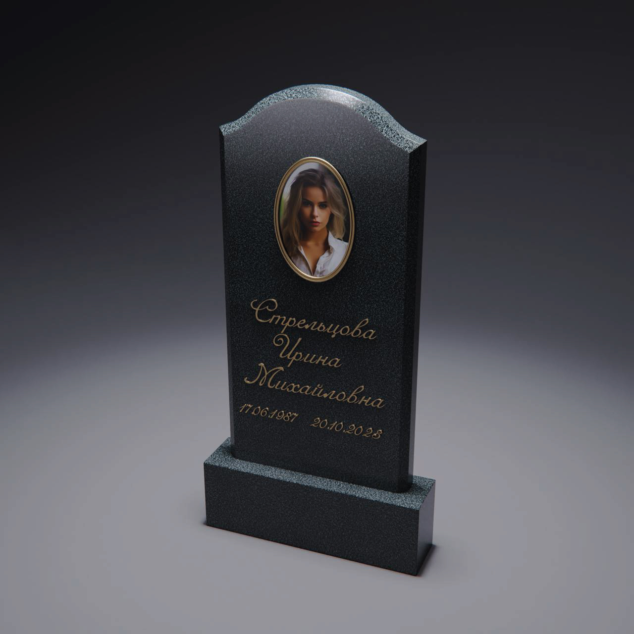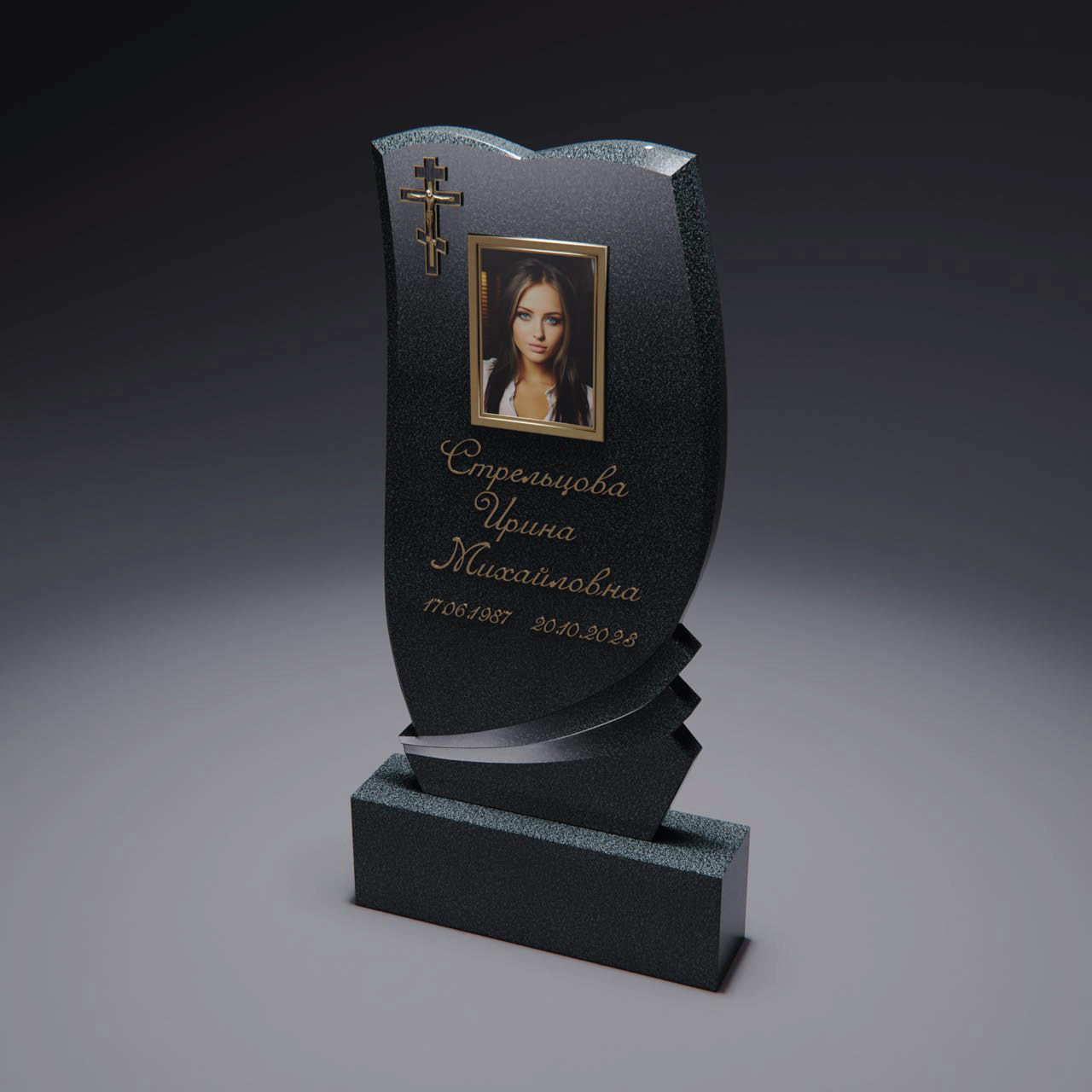 Памятник с волнообразным силуэтом с крестом и прямоугольным портретом