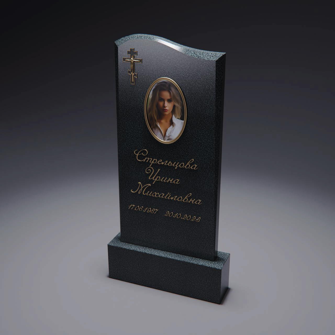 Классический памятник с плавными линиями и овальным портретом